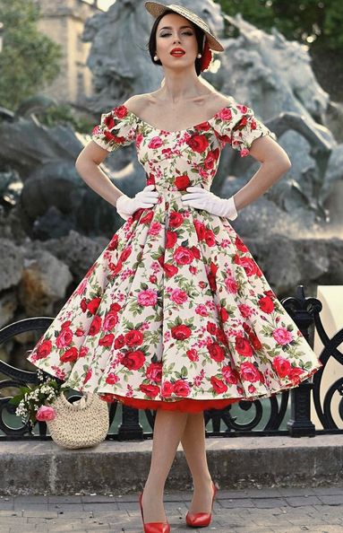 Женственные платья с пышной юбкой-клеш, характерные для 50-х годов.